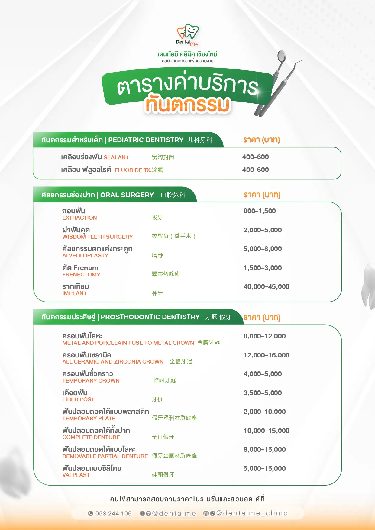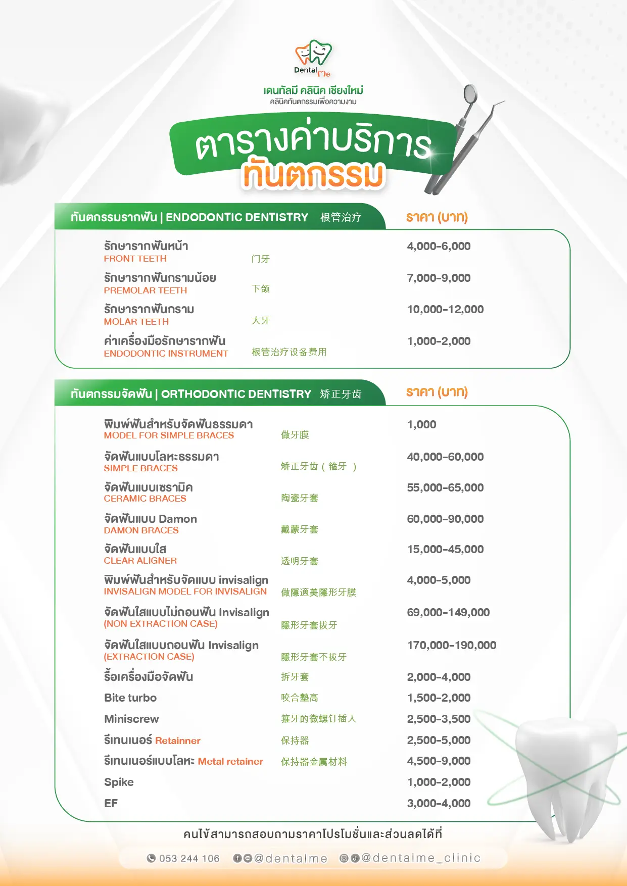 Dentalme 牙科诊所是清迈值得信赖的牙科诊所。我们提供隐适美牙套、Damon 自锁托槽矫正、牙贴面、牙齿美白和种植牙,为当地居民、外籍人士和牙科旅游者提供实惠价格。